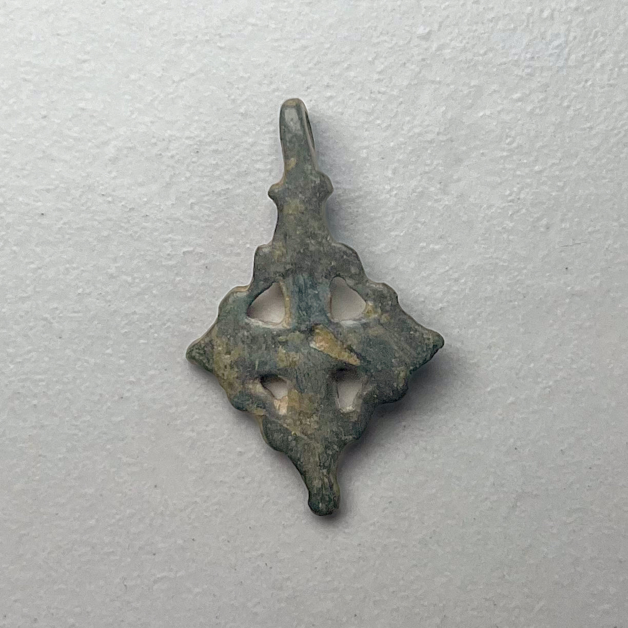 Tämä avoin, kehyksellinen ristiriipus edustaa viikinkiajan loppupuolen korutyyppiä, jossa kristillinen ja esikristillinen symboliikka limittyvät. Muoto, jossa neljä sakaraa liittyy kehämäiseen runkoon, on tunnistettavissa erityisesti Tanskan, Ruotsin ja Baltian rannikkoalueiden 900–1000-lukujen hautalöydöissä. Kehyksen epätäydellinen pyöreys ja sakaroiden sydämenmuotoiset aukot viittaavat aurinkoristin perinteeseen, mutta esineen käyttötarkoitus on todennäköisesti ollut kristillisen ristin kaltainen.