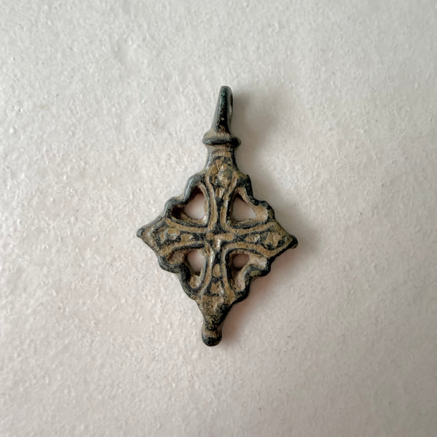 Huom! Oheinen pronssista valettu risti on vanha, ahkerassa käytössä ollut yksittäiskappale. Siinä saattaa olla pieniä pintavikoja, kuten hapettumaa, murtumia, kolhuja ja kulumaa.
