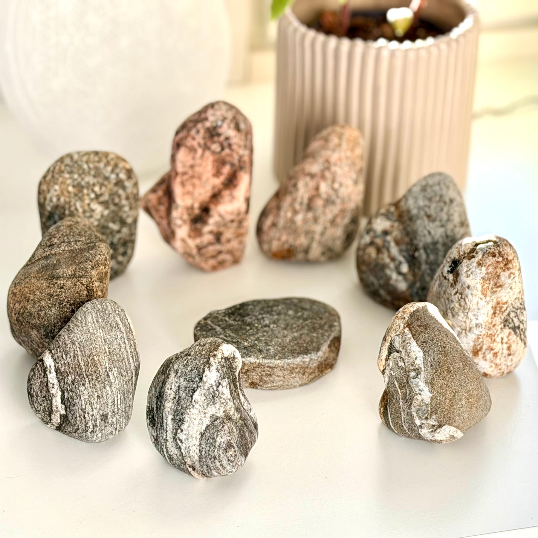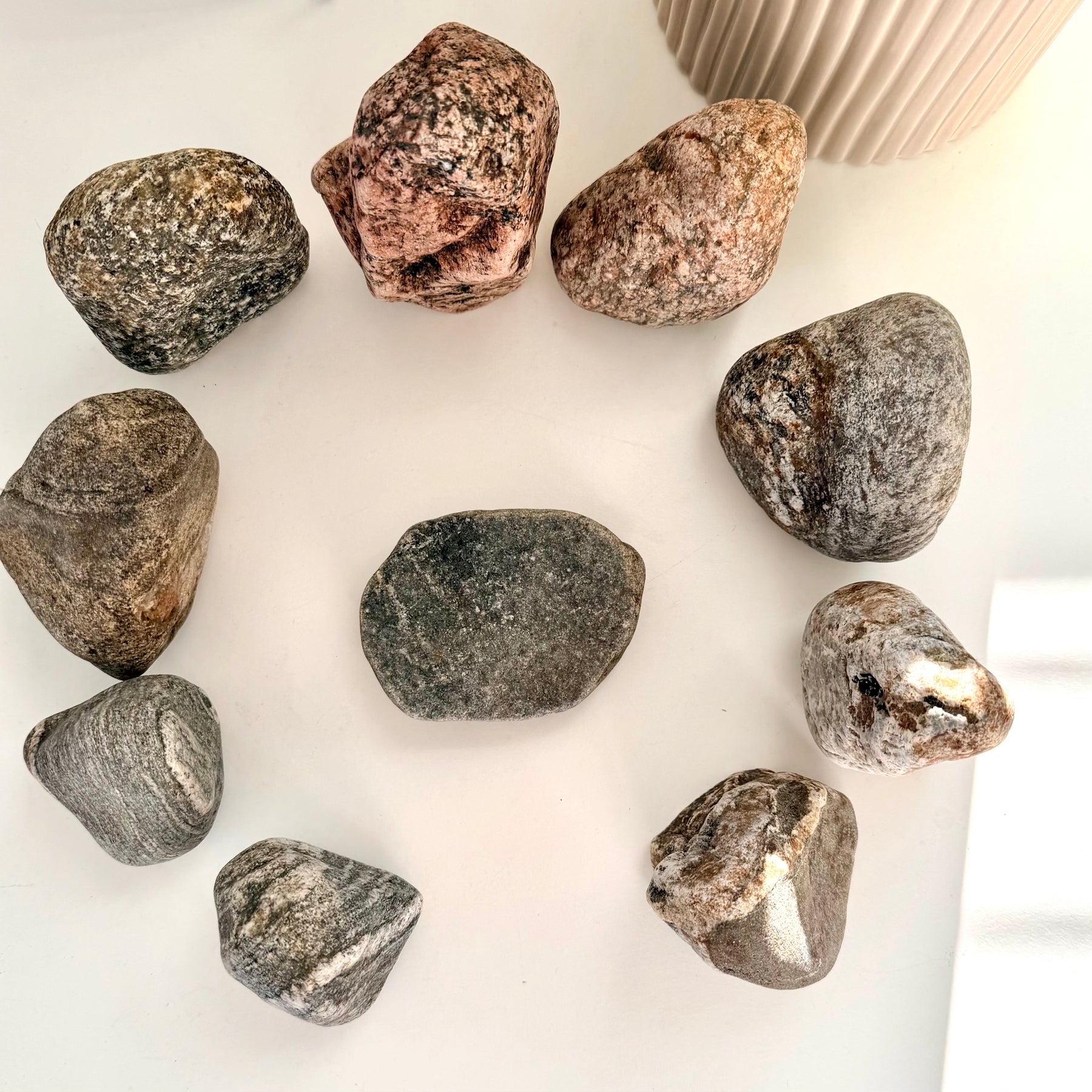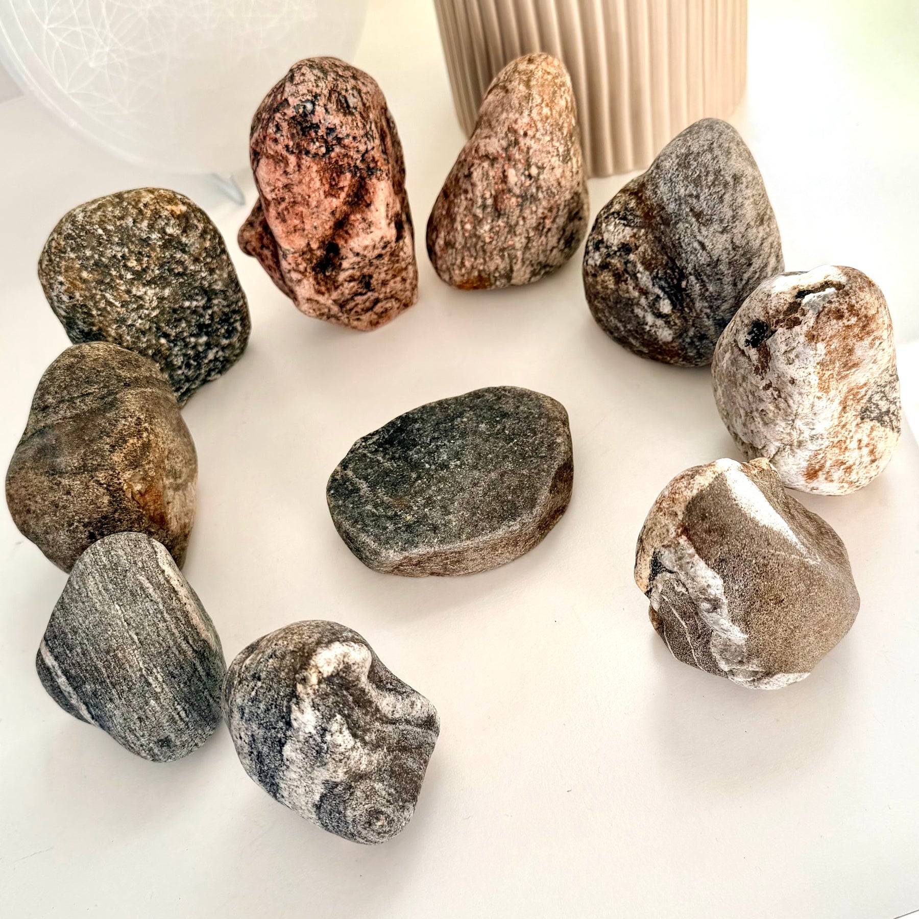 Kivikehät ovat historiallisesti rajanneet erityisen ja pyhän tilan arjen ulkopuolelle. Ne ovat olleet paikkoja, joissa yhteisö on pysähtynyt, toistanut merkityksellisiä tekoja ja vakiinnuttanut rituaalisia käytäntöjään. Pöytäkokoinen kivikehä tuo tämän ikiaikaisen perinteen osaksi nykyhetkeä ja tarjoaa konkreettisen tavan käyttää rajattua tilaa itselle merkitykselliseen ja pyhään toimintaan omassa kodissa.