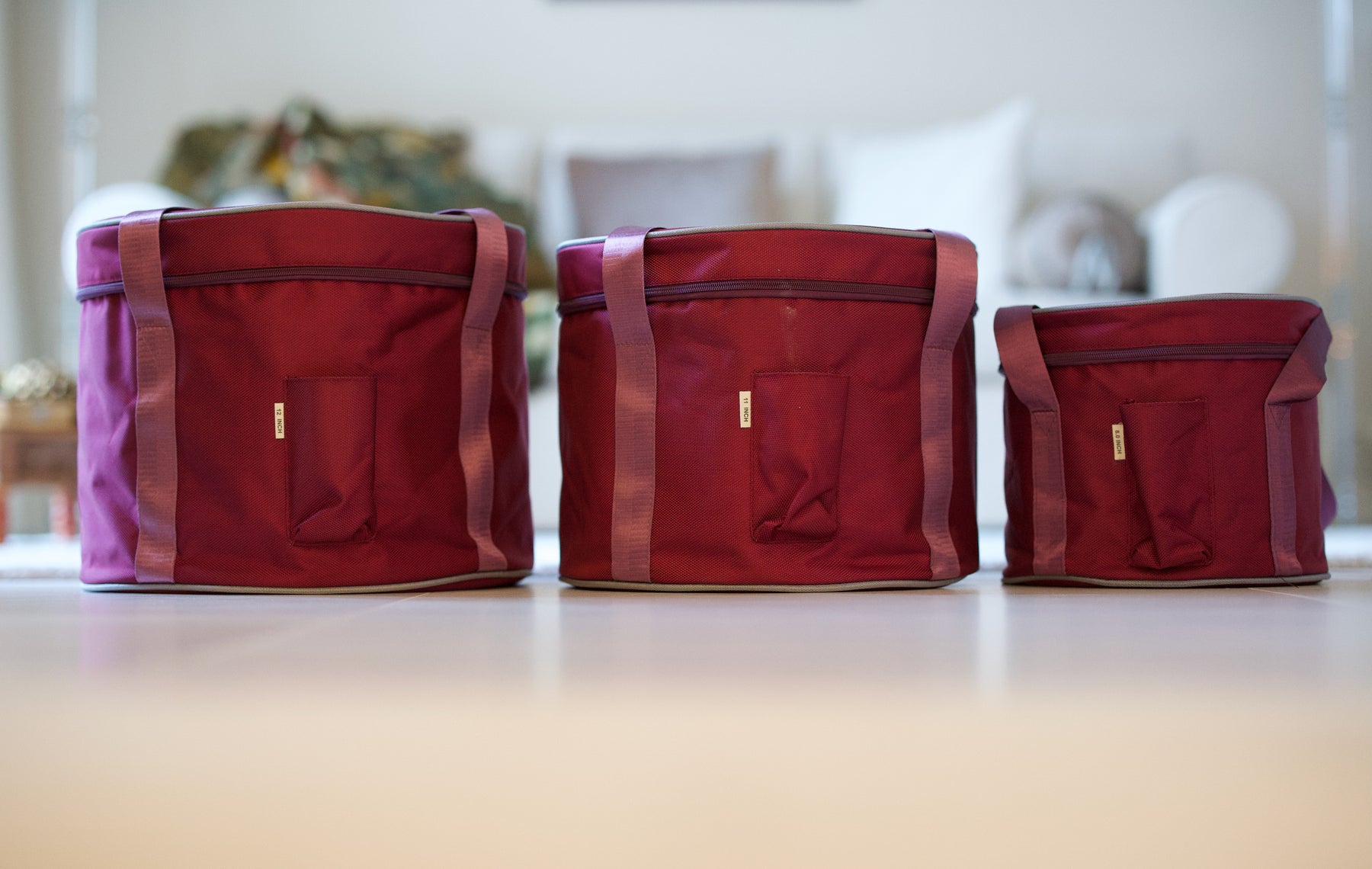 - Kolme korkealaatuista kantolaukkua. Kaikki maljat mahtuvat kantolaukkuihin kätevän sisäkkäisen pakkaamisen mahdollistavan pehmusterakenteen ansiosta. Laukut ja kantohihnat ovat kestävää ja tukevaa kangasta.