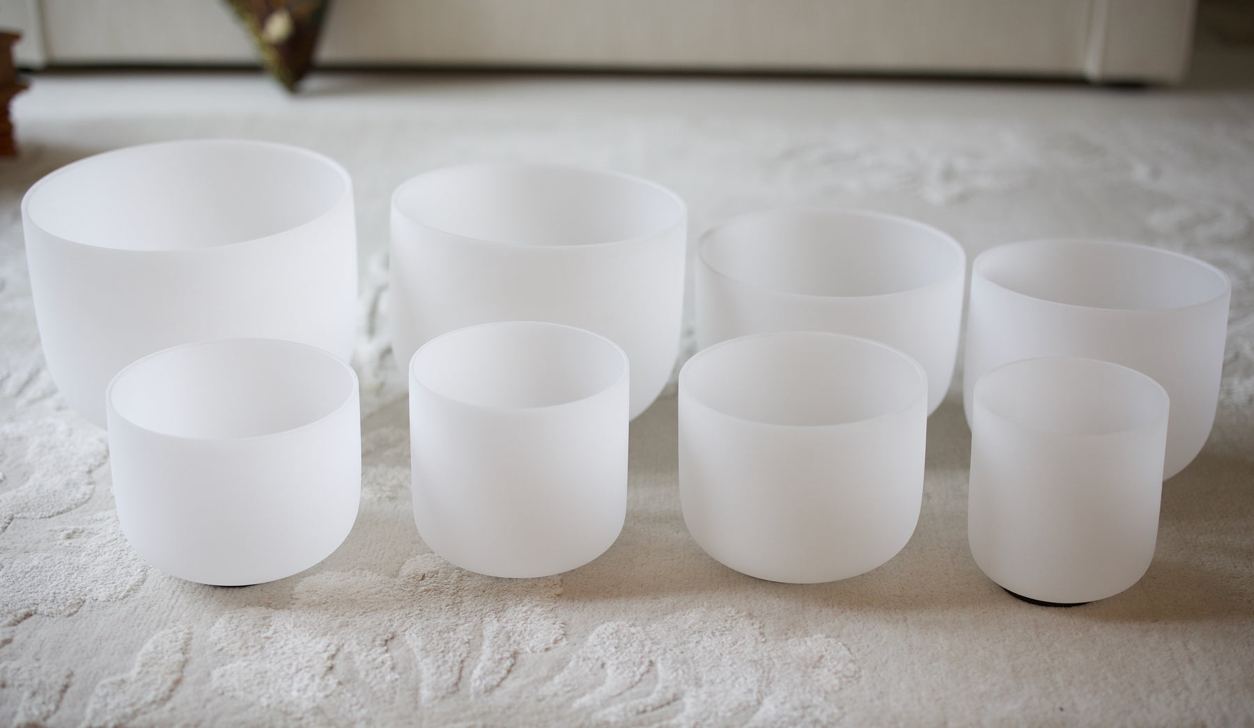 Tämä kahdeksan maljan huurrettu kristalliäänimaljasetti on valmistettu puhdistetusta kvartsihiekasta, joka sulatetaan ja valetaan muottiin, jolloin syntyy homogeeninen, akustisesti vakaa ja yhtenäinen rakenne. Kvartsi on tunnettu tasaisesta kiderakenteestaan ja erinomaisista resonanssiominaisuuksistaan, joka tekee siitä ihanteellisen valmistusmateriaalin kristalliäänimaljoihin.