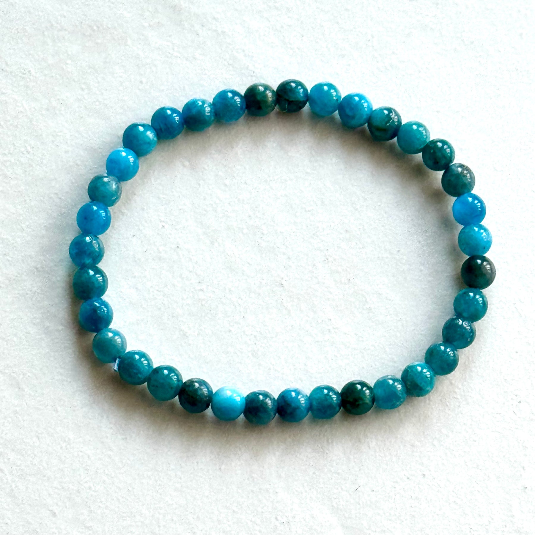 Apatite is believed to have inspirational properties. It is considered a stone of manifestation, attuned to the future while remaining connected to past lives. It is thought to develop psychic gifts and spiritual sensitivity, deepen meditation, raise kundalini energy, and support communication and self-expression on all levels. Apatite is said to promote openness and social ease, encouraging extroversion and dissolving aloofness and feelings of alienation. It is believed to dispel negativity about oneself and others, reduce irritability, and help overcome emotional exhaustion. Blue apatite, in particular, is thought to connect to a very high level of spiritual guidance. It is said to facilitate public speaking, enhance group communication, open the throat chakra, and heal the heart and emotional imbalances.