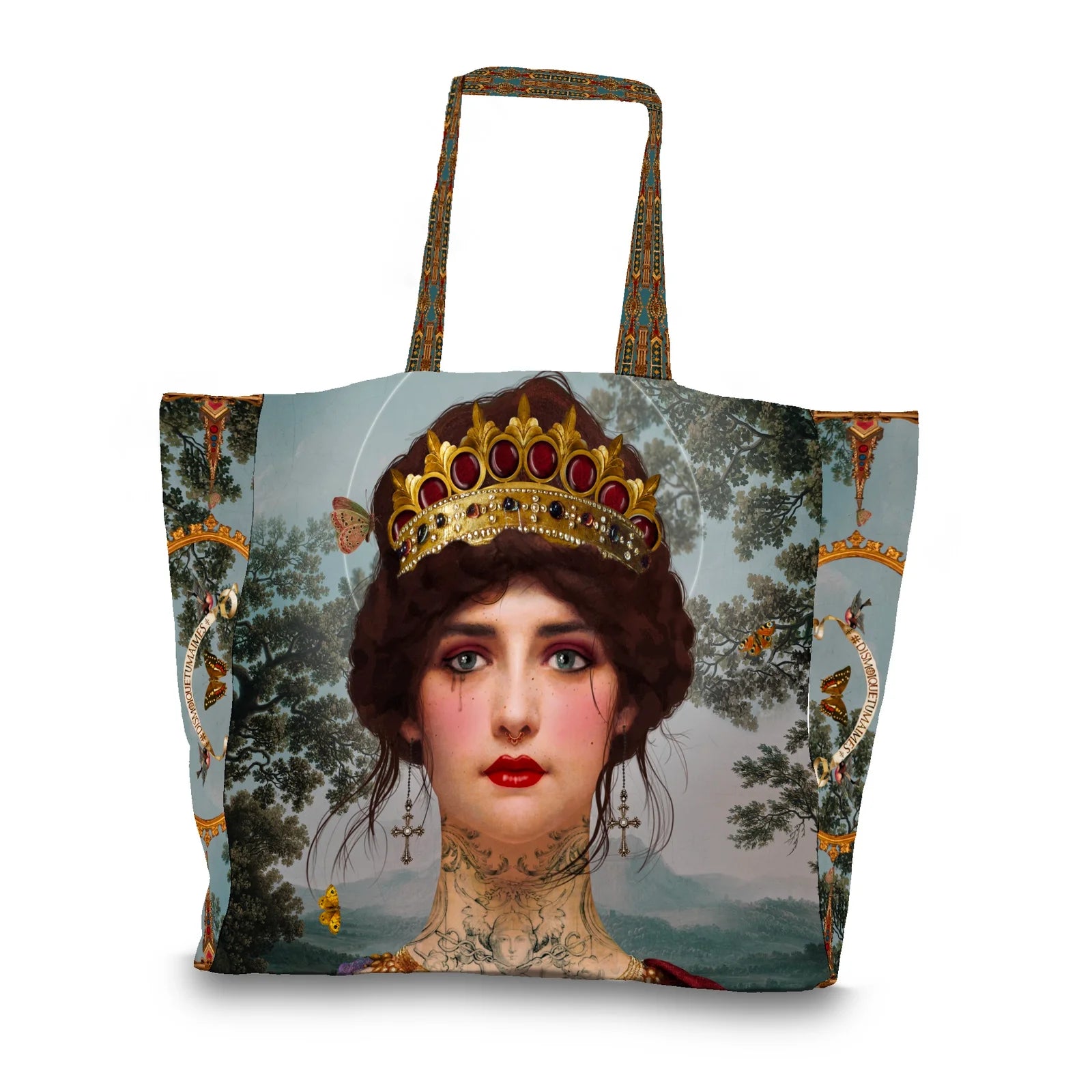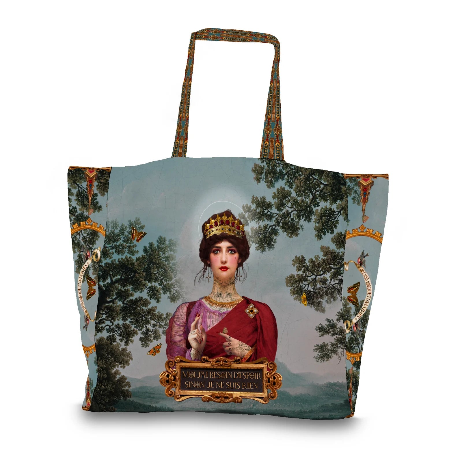 Voglio Bene's large and gorgeous, high-quality tote bag with Hope print. Different prints on the front and back. Finished with an inner lining.