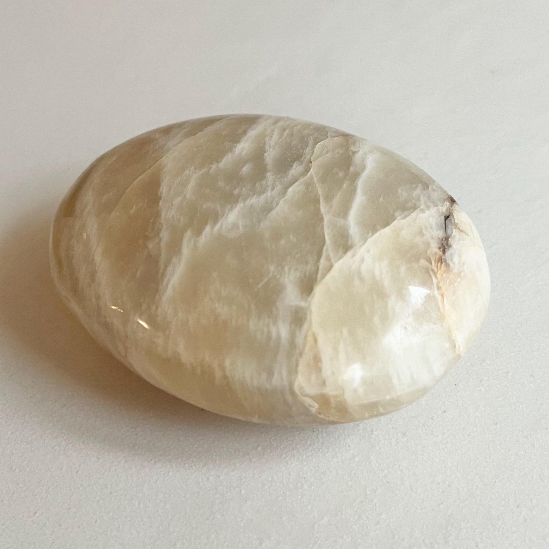 A moonstone palm stone can also be placed on different parts of the body: on the forehead for spiritual connection, on the heart area for emotional balance, or on the solar plexus to help bring suppressed emotions to the surface for processing.