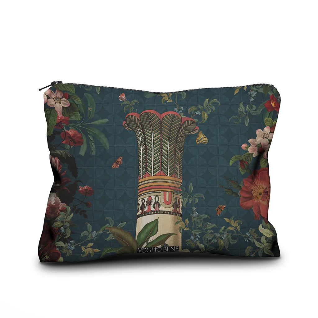 A stunning, high-quality velvet pouch by Voglio Bene, featuring the Scarab artwork. Different prints adorn the front and back. Finished with a zip closure and inner lining.