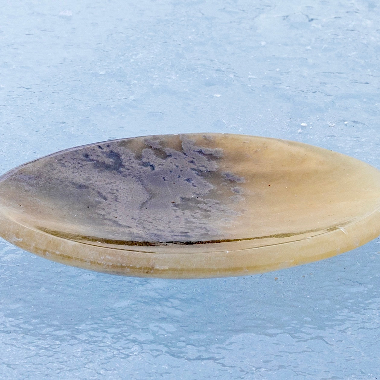 Onyx has been used in jewelry and carvings since ancient times, and it is often regarded as a symbol of strength and protection. The dish is suitable for various purposes, such as being placed on an altar or used as a dish for intentions or offerings.