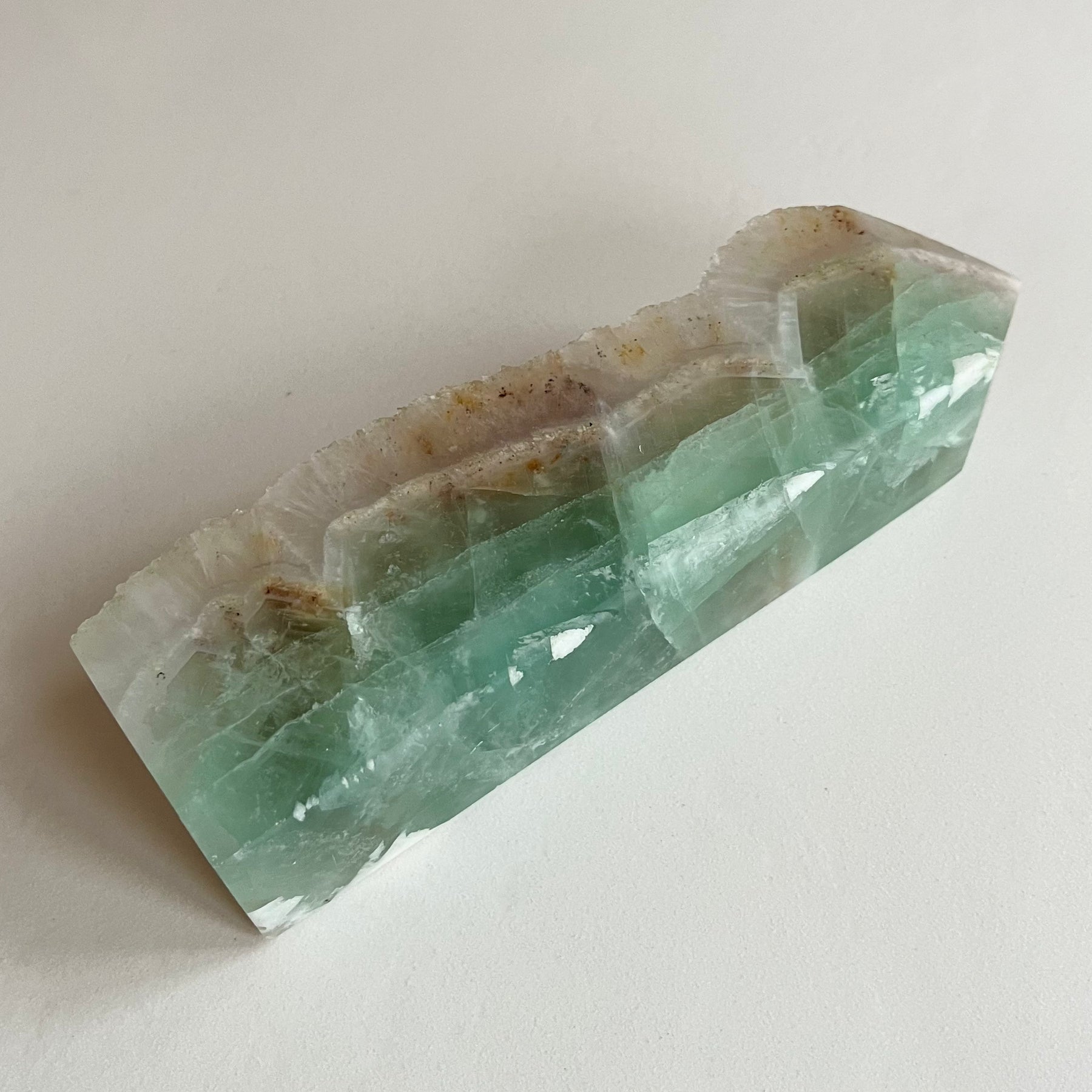 Fluorite is considered a highly protective and harmonizing stone. It is believed to remove negative energies and stress factors, cleansing and reorganizing everything in the body that is out of balance. On a psychological level, fluorite helps dissolve rigid behavioral patterns, gently opening the door to the subconscious.