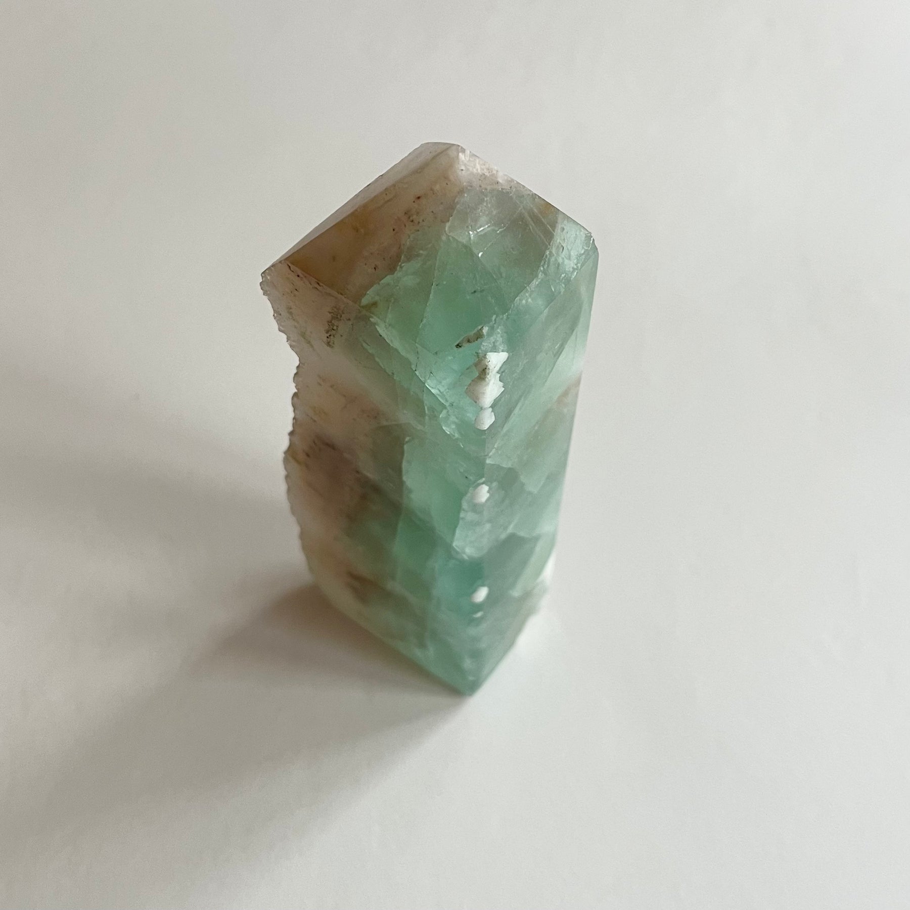 Kuvassa fluoriittitorni valkoisella taustalla.