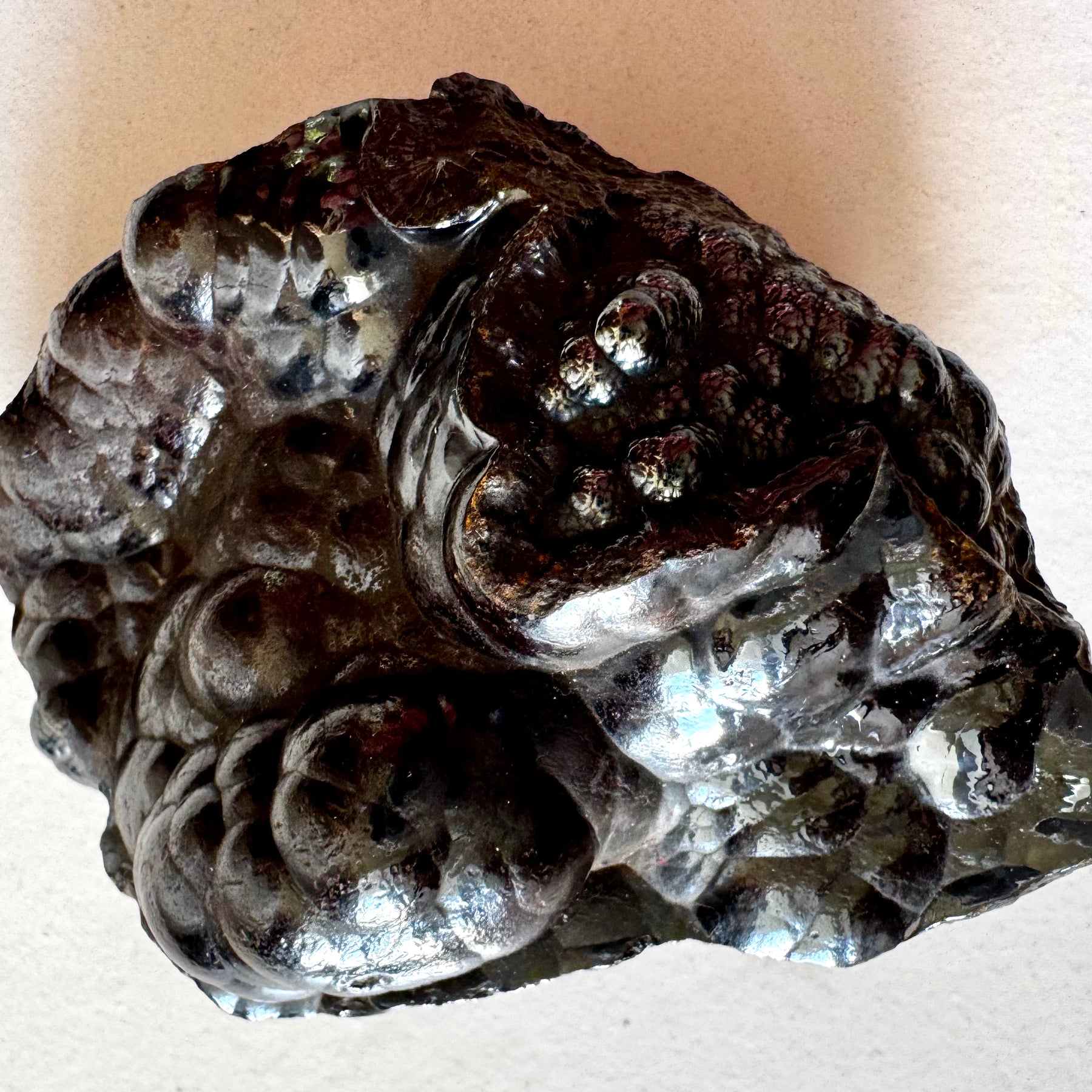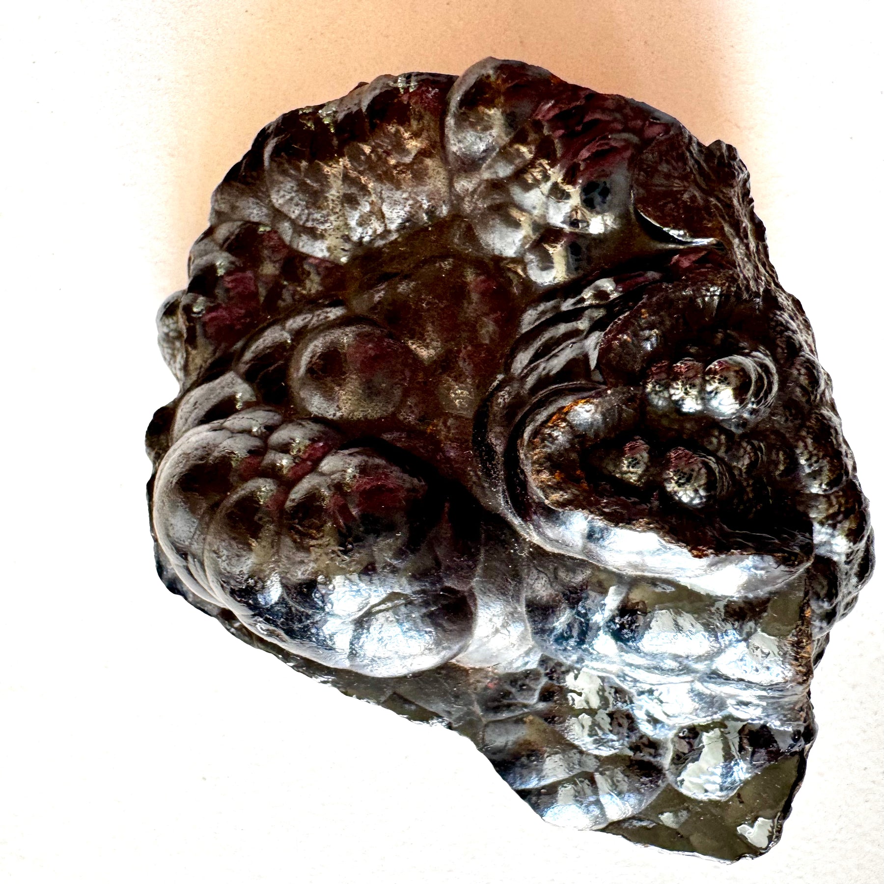 Hematite is known as a grounding and protective stone. It is associated with the power of the Earth, vitality, and blood — symbolically anchoring spirit into matter. The botryoidal form adds a new dimension to this symbolism, reflecting a cellular-like integrity, unity within diversity, and the organic rhythm of life. Each rounded mound of the stone can be seen as an individual that nevertheless belongs to a greater whole — much like people in the world or cells within the body.