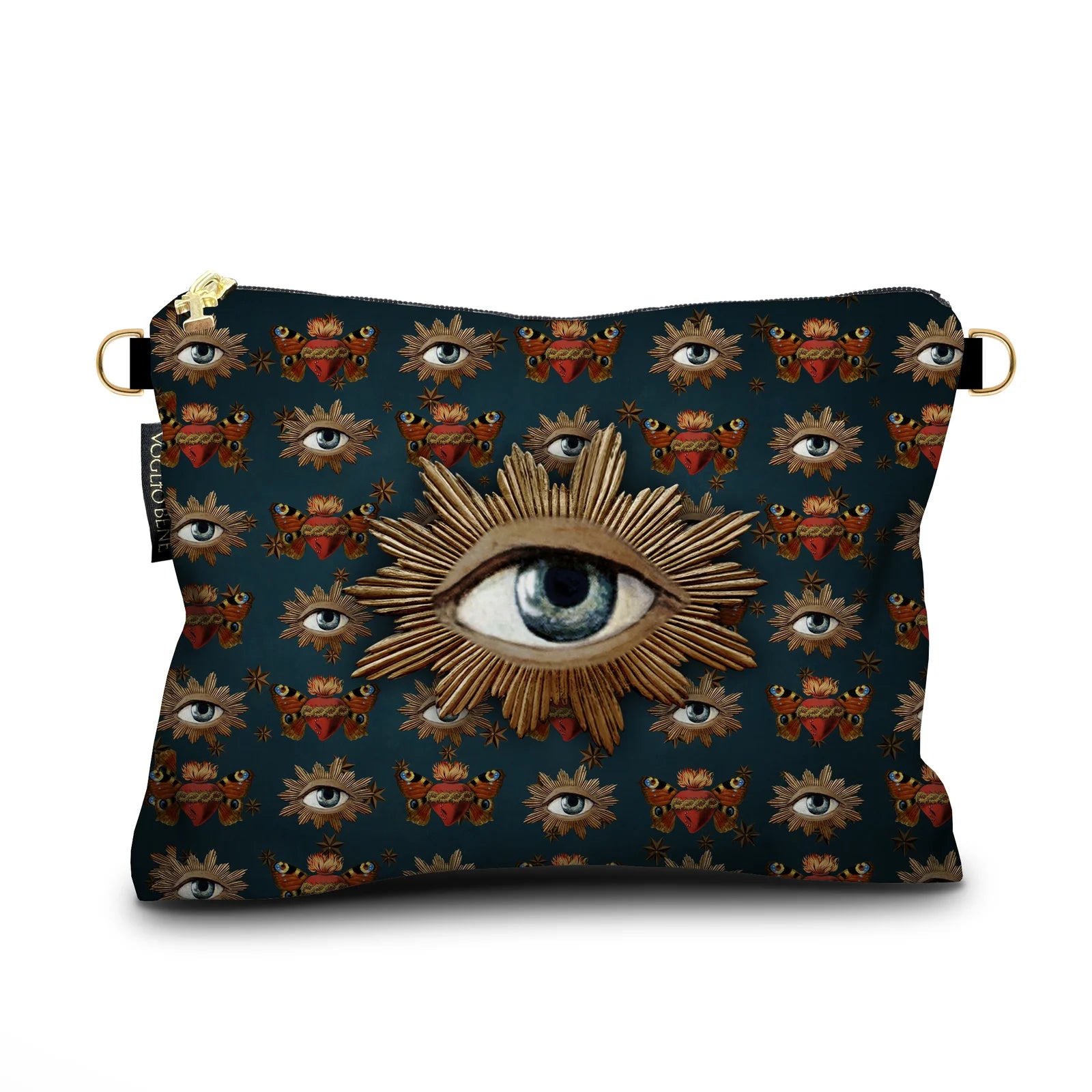 A stunning, high-quality velvet bag by Voglio Bene, featuring the elegant Sacred Butterfly print. The same design appears on both sides. Finished with a zip closure and lined interior.