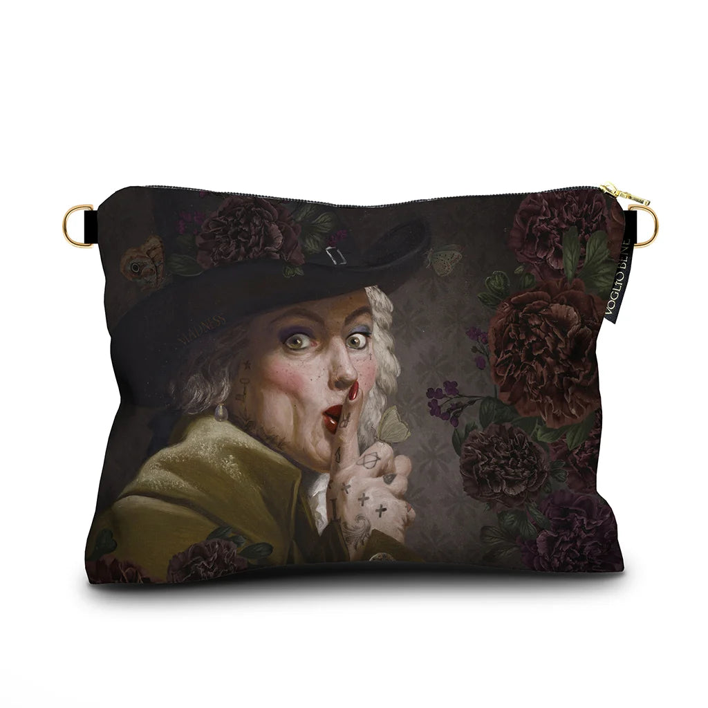 A stunning, high-quality velvet bag by Voglio Bene, featuring the elegant The Key Woman print. The same design appears on both sides. Finished with a zip closure and lined interior.