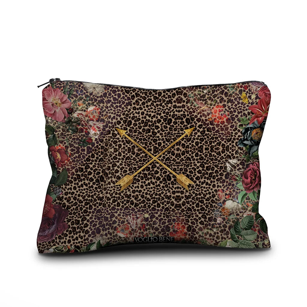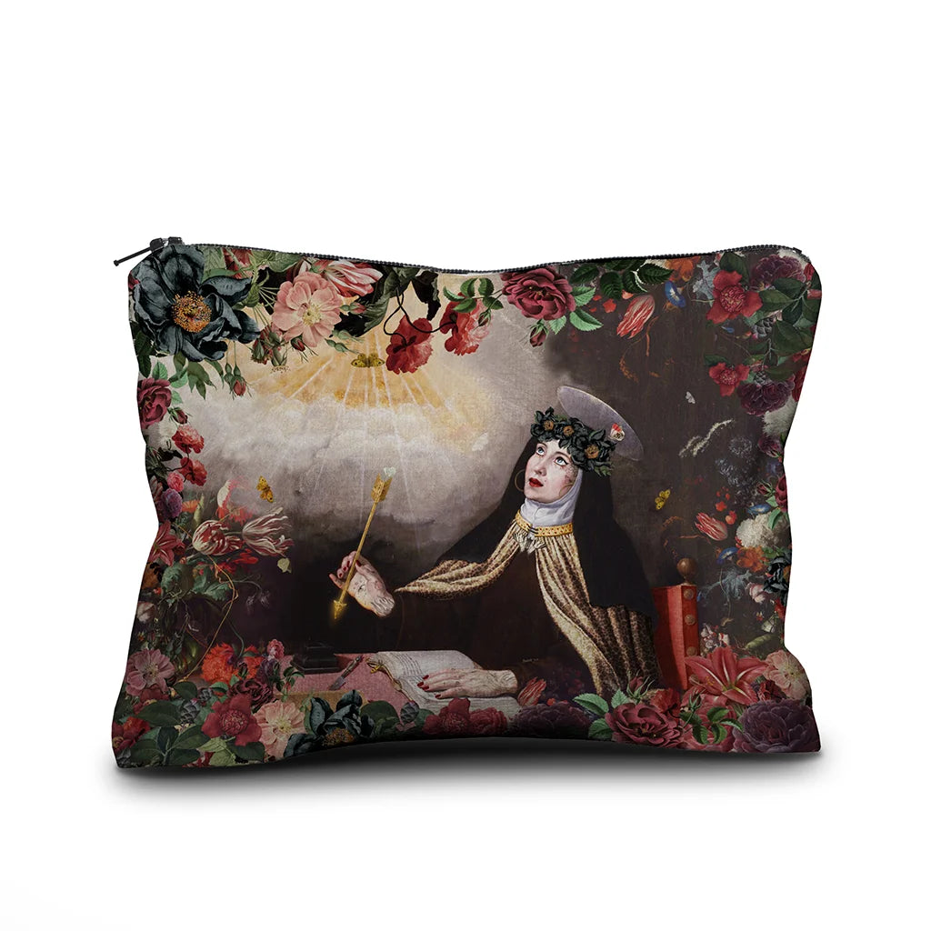 A stunning, high-quality velvet pouch by Voglio Bene, featuring the Blessing artwork. Different prints adorn the front and back. Finished with a zip closure and inner lining.