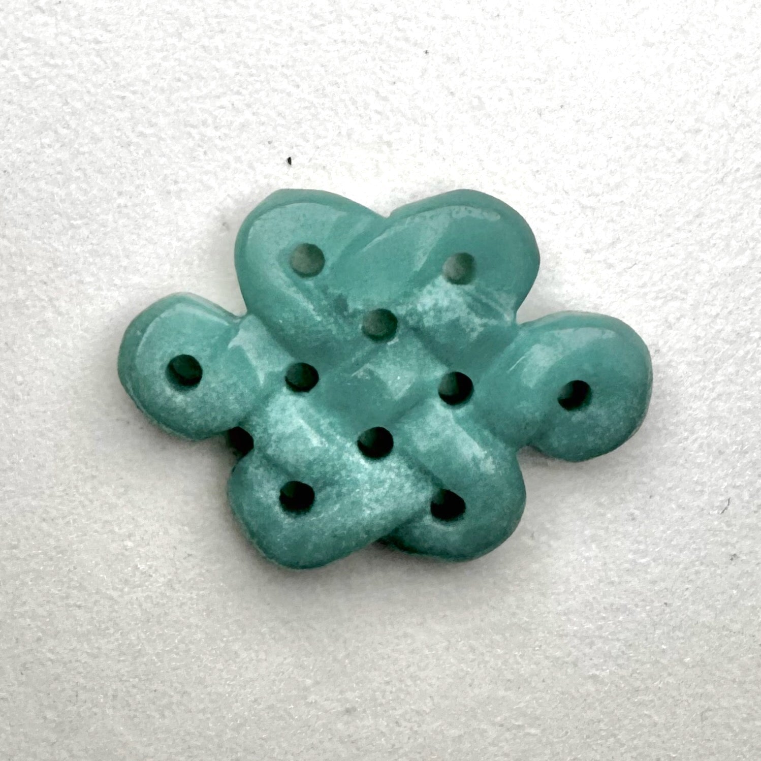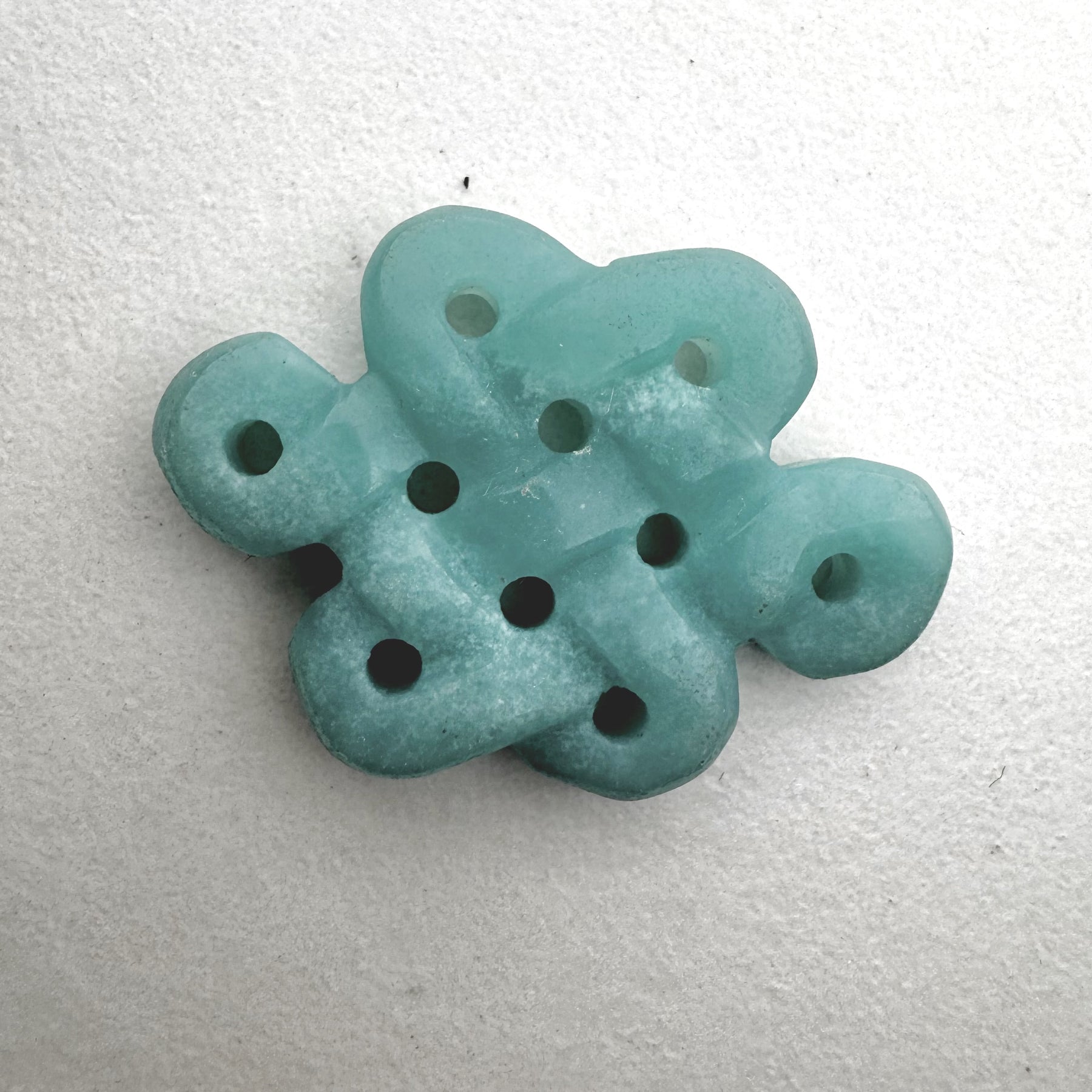 The Infinite Knot carved from amazonite brings together two ancient traditions: the eternal knot of the Dharmic cultural sphere and the stone known throughout Central and South America, valued for its structure and colour.